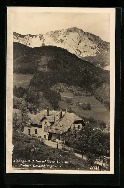 AK Prein, Gasthof Geyschläger am Preiner Gscheid gegen Rax