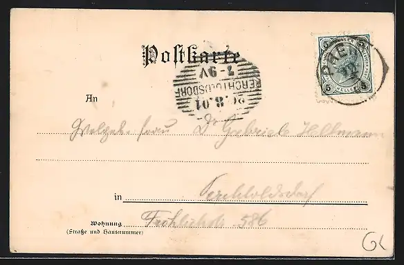 alte Ansichtskarte, gelaufen 1901, Eckknick li. oben, guter Zustand