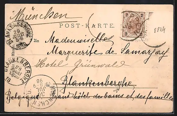alte Ansichtskarte, gelaufen 1898, Briefmarke entfernt, rückseitig Oberflächenschaden, guter Zustand
