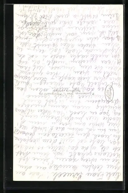 Personenbezogene Daten auf der Rückseite der Karte wurden durch blauen Textmarker unkenntlich gemacht. Die blauen Stellen sind auf die Vorderseite durchgeweicht und wirken sich negativ auf das Postkartenfoto aus