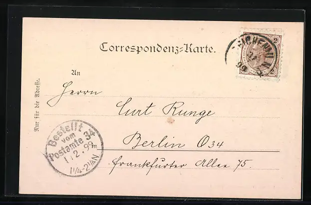 alte Ansichtskarte, gelaufen 1899, Eckknick unten re., guter Zustand