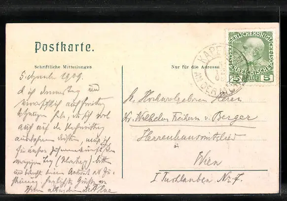 alte Ansichtskarte, gelaufen 1909, guter Zustand