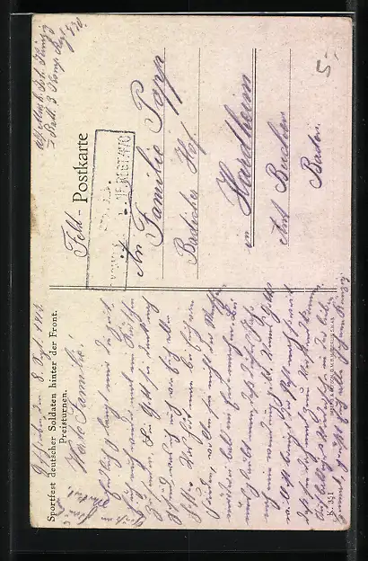 AK Preisturnen, Sportfest deutscher Soldaten hinter der Front
