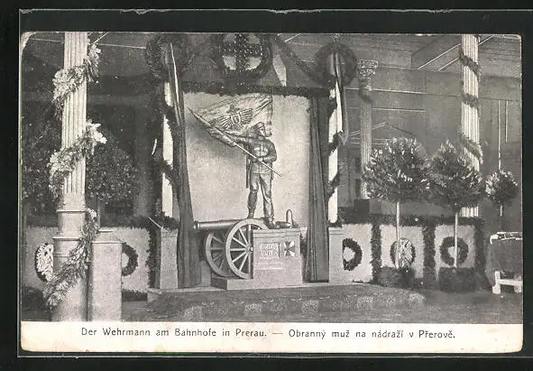 AK Prerau, Eiserner Wehrmann am Bahnhof, Nagelung