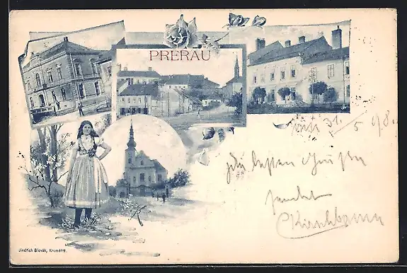 AK Prerau, Gebäudeansicht, Kirche, Strassenpartie