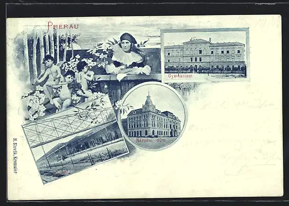 AK Prerau, Gymnasium, Bahnhof, Narodni dum