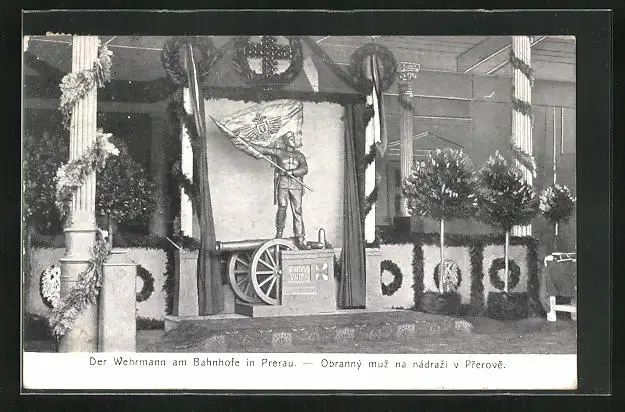 AK Prerau, Wehrmann am Bahnhof, Nagelung, Kriegshilfe