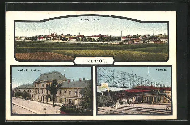 AK Prerov, Bahnhof /Nádrazi, Blick auf die Stadt