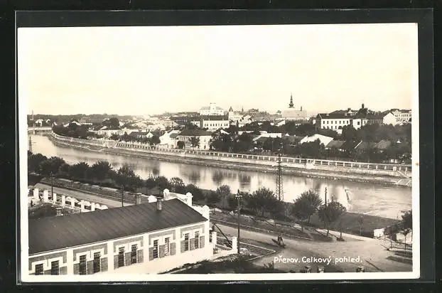 AK Prerov, Blick von der Uferpromenade auf die gesamte Stadt