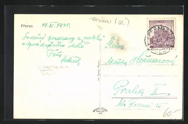 AK Prerov, Flusspartie mit Brücke und Gebäuden