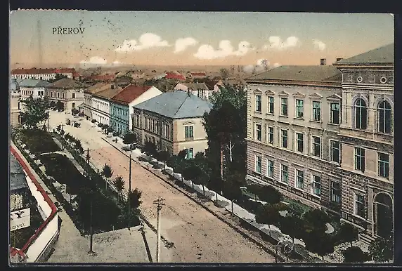 AK Prerov, Strassenpartie aus der Vogelschau