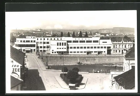 AK Prerov, Strassenpartie mit Gebäudeansicht
