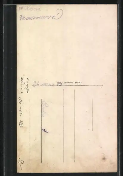 Personenbezogene Daten auf der Rückseite der Karte wurden durch blauen Textmarker unkenntlich gemacht. Die blauen Stellen sind auf die Vorderseite durchgeweicht und wirken sich negativ auf das Postkartenfoto aus