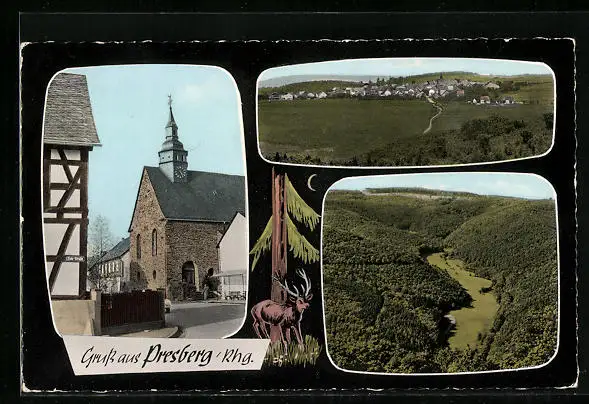 AK Presberg /Rhg., Ortsansicht mit Umgebung und Kirche