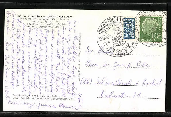 AK Presberg im Rheingau, Gasthaus Rheingauer Alp, Panorama mit Kammerforst