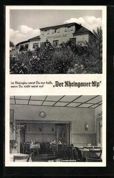 AK Presberg im Rheingau, Gasthaus und Pension Rheingauer Alp, Innenansicht