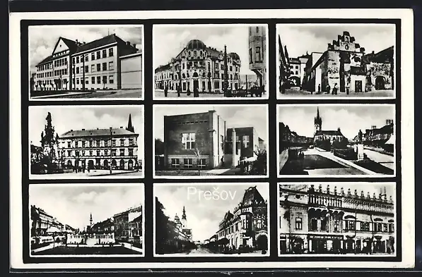 AK Presov, Blick auf grosses Gebäude, Strassenpartie