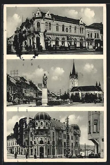 AK Presov, Ortspartie mit Kirche und Denkmal, Gebäudeansichten