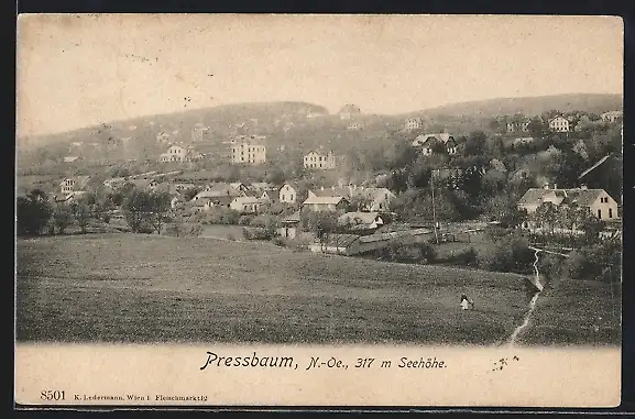 AK Pressbaum /N.-Oe., Ortsansicht von einer Wiese aus