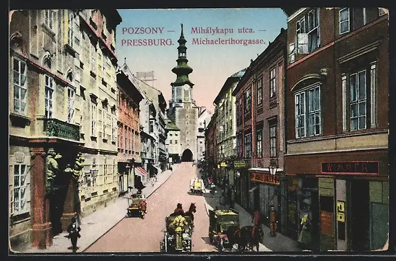 AK Pressburg, Michaelerthorgasse mit Fuhrwerken