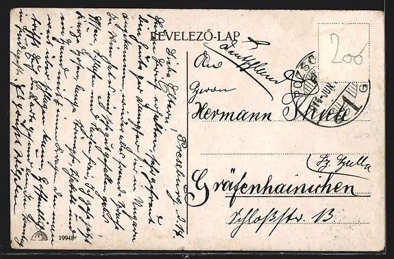 alte Ansichtskarte, gelaufen 1914, Briefmarke entfernt, guter Zustand