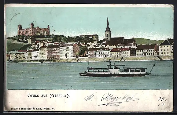AK Pressburg, Teilansicht mit Donaupartie