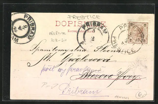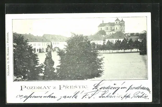 AK Prestice, Ortspartie mit Schloss