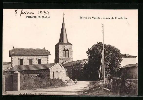AK Prétieux, Entrée du Village, Route de Montbrison