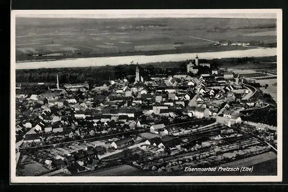 AK Pretzsch / Elbe, Totalansicht aus der Vogelschau