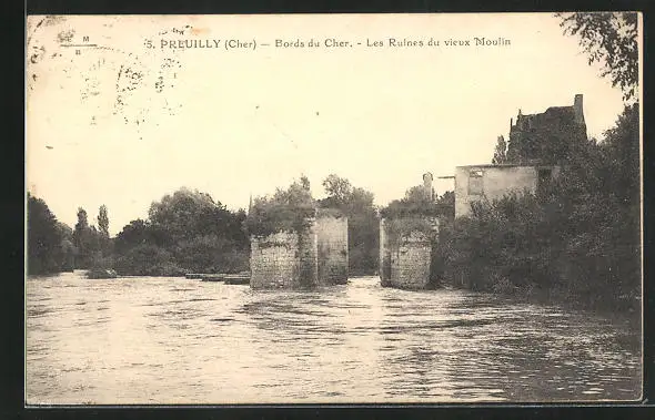 AK Preuilly, Bords du Cher, Les Ruines du vieux Moulin
