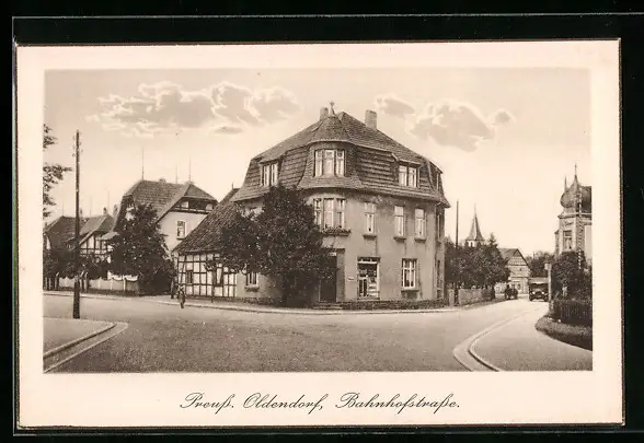 AK Preuss. Oldendorf, Häuser an der Bahnhofstrasse