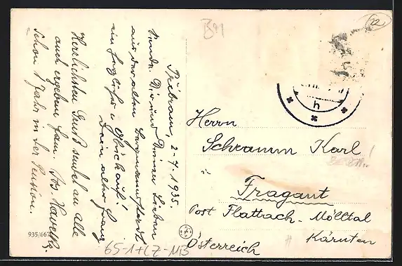 gelaufen 1935, Briefmarke entfernt, guter Zustand