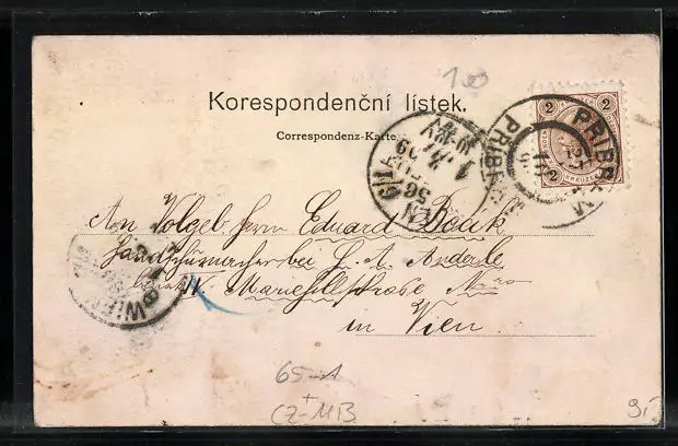 Personenbezogene Daten auf der Rückseite der Karte wurden durch blauen Textmarker unkenntlich gemacht. Die blauen Stellen sind auf die Vorderseite durchgeweicht und wirken sich negativ auf das Postkartenfoto aus