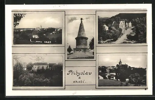AK Pribyslav a okoli, Teilansicht, Denkmal, Ortspartie
