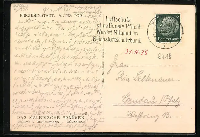 alte Ansichtskarte, gelaufen 1938, guter Zustand