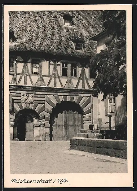 AK Prichsenstadt /Ufr., Fachwerkhaus mit Brunnen