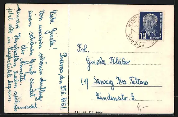 alte Ansichtskarte, gelaufen 1951, guter Zustand