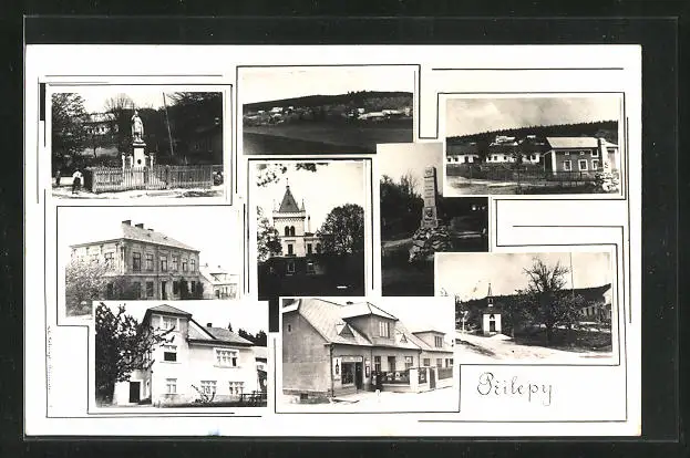 AK Prílepy, Ortsansicht, Ortspartie, Kirche und Denkmal