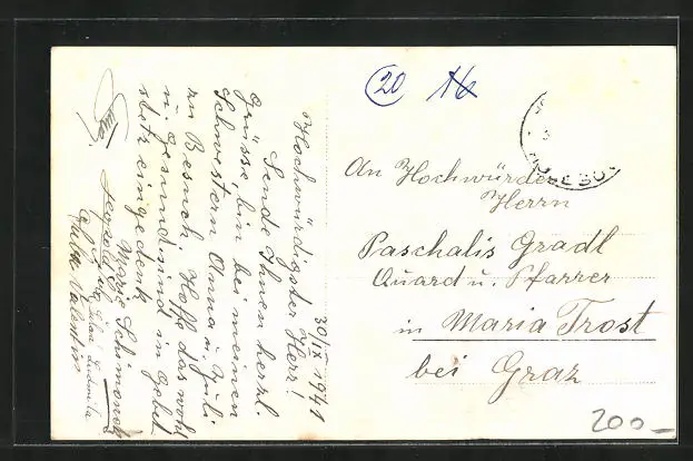 alte Ansichtskarte, gelaufen 1941, Briefmarke entfernt, guter Zustand