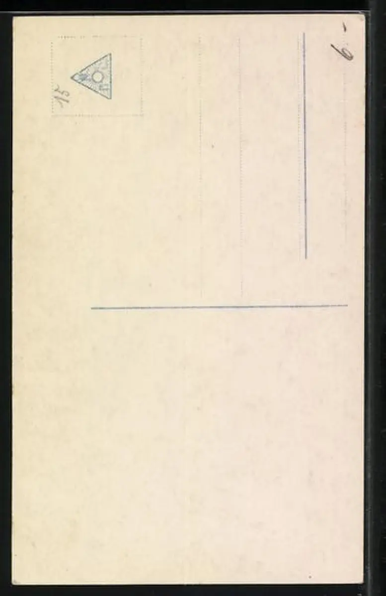 Personenbezogene Daten auf der Rückseite der Karte wurden durch blauen Textmarker unkenntlich gemacht. Die blauen Stellen sind auf die Vorderseite durchgeweicht und wirken sich negativ auf das Postkartenfoto aus