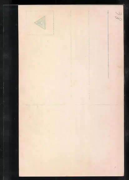 Personenbezogene Daten auf der Rückseite der Karte wurden durch blauen Textmarker unkenntlich gemacht. Die blauen Stellen sind auf die Vorderseite durchgeweicht und wirken sich negativ auf das Postkartenfoto aus