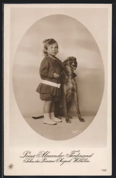 AK Prinz Alexander Ferdinand als kleines Kind mit grossem Hund