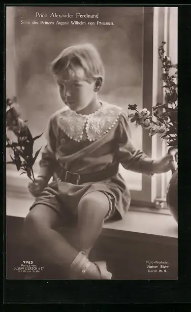 AK Prinz Alexander Ferdinand von Preussen auf einer Fensterbank sitzend
