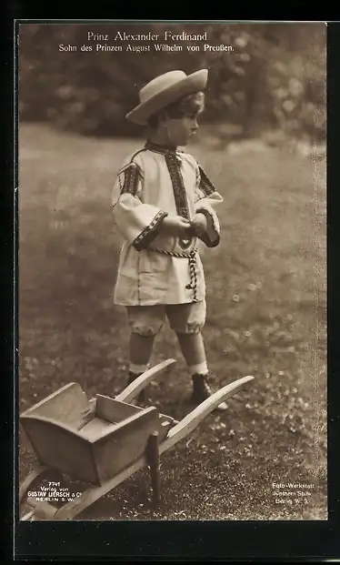 AK Prinz Alexander Ferdinand von Preussen mit Schubkarre