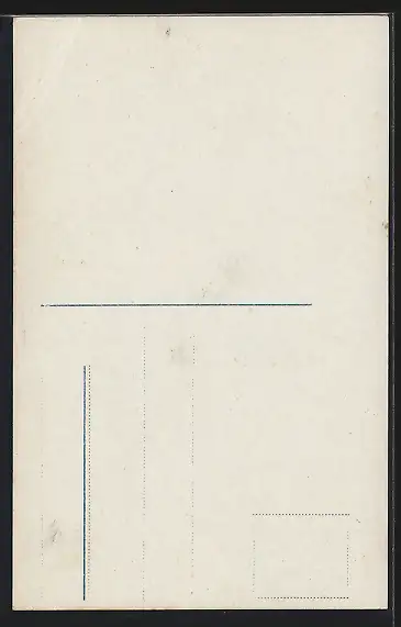 Personenbezogene Daten auf der Rückseite der Karte wurden durch blauen Textmarker unkenntlich gemacht. Die blauen Stellen sind auf die Vorderseite durchgeweicht und wirken sich negativ auf das Postkartenfoto aus