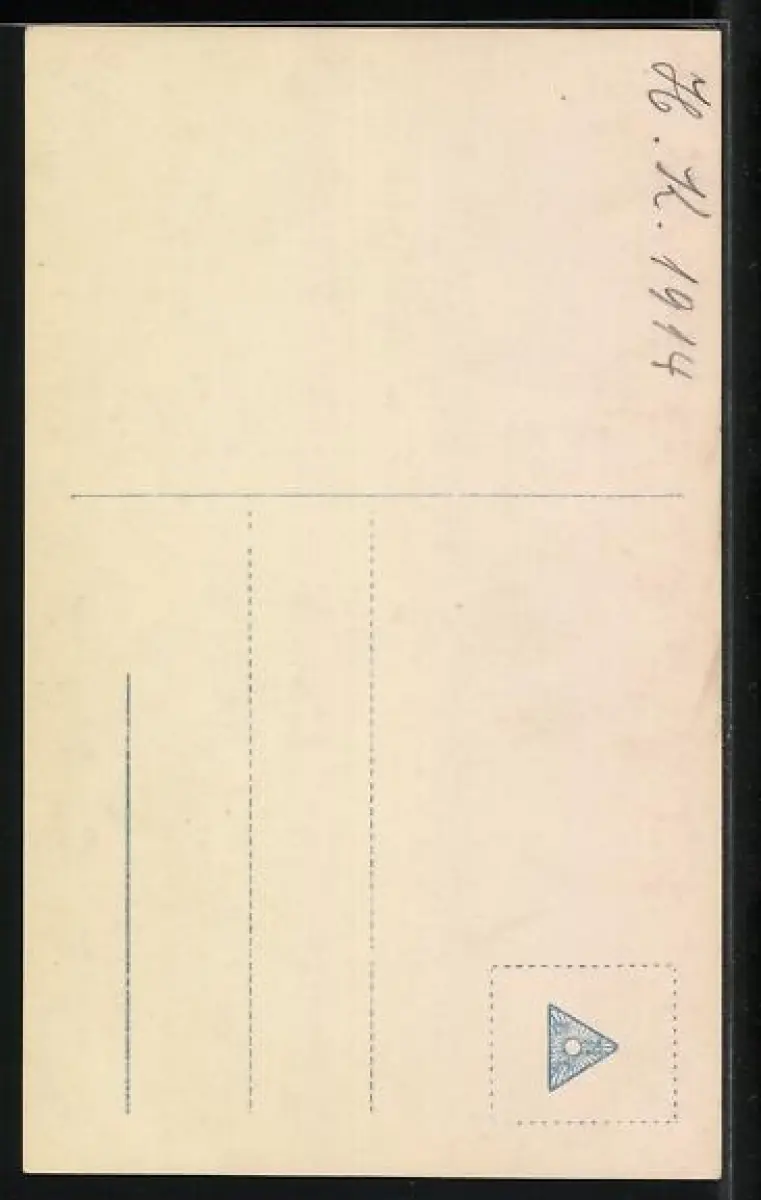 Personenbezogene Daten auf der Rückseite der Karte wurden durch blauen Textmarker unkenntlich gemacht. Die blauen Stellen sind auf die Vorderseite durchgeweicht und wirken sich negativ auf das Postkartenfoto aus