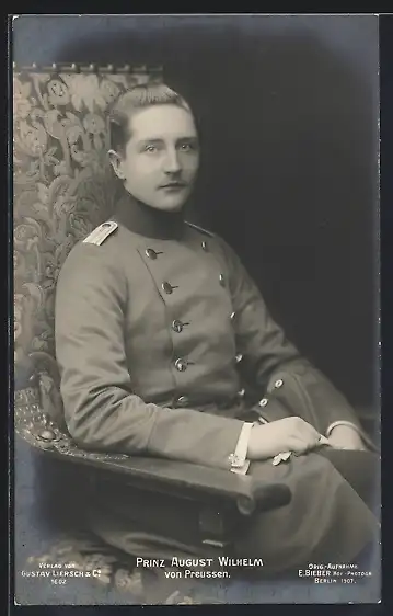 AK Prinz August Wilhelm von Preussen in Uniform im Stuhl sitzend