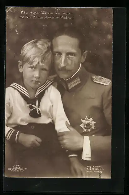 AK Prinz August Wilhelm von Preussen in Uniform mit Prinz Alexander Ferdinand