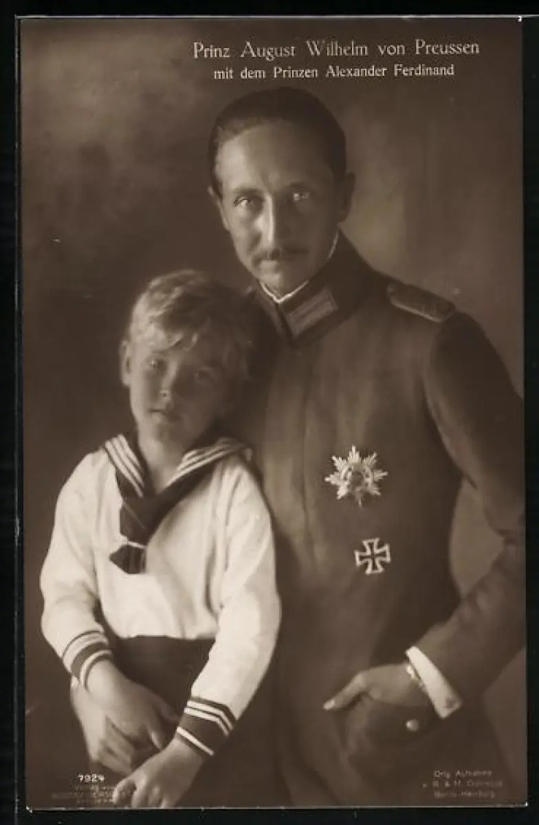 AK Prinz August Wilhelm von Preussen in Uniform mit Prinzen Alexander Ferdinand
