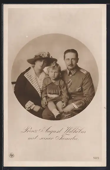 AK Prinz August Wilhelm von Preussen in Uniform mit seinem Sohn auf dem Schoss nebst seiner Gemahlin